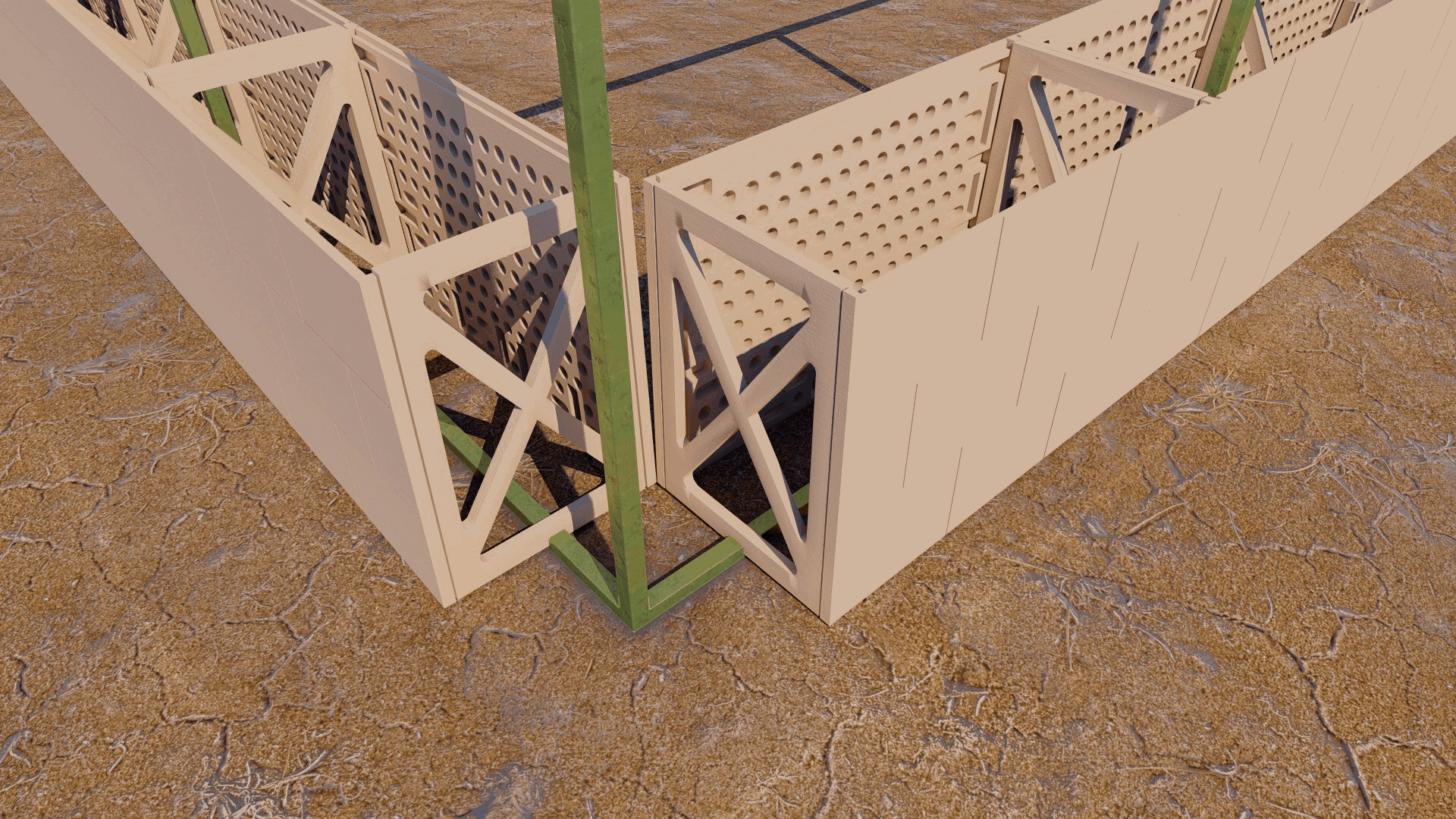 Las placas estructurales son ensambladas alrededor o por encima de la cimentación. Estas funcionan como un encofrado permanente y se ensamblan por niveles: atornillando y rellenando.